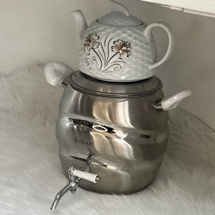 کتری و قوری مکسون کف چدن، کتری استیل طرحدار 6 لیتری و قوری چینی | ارسال رایگان