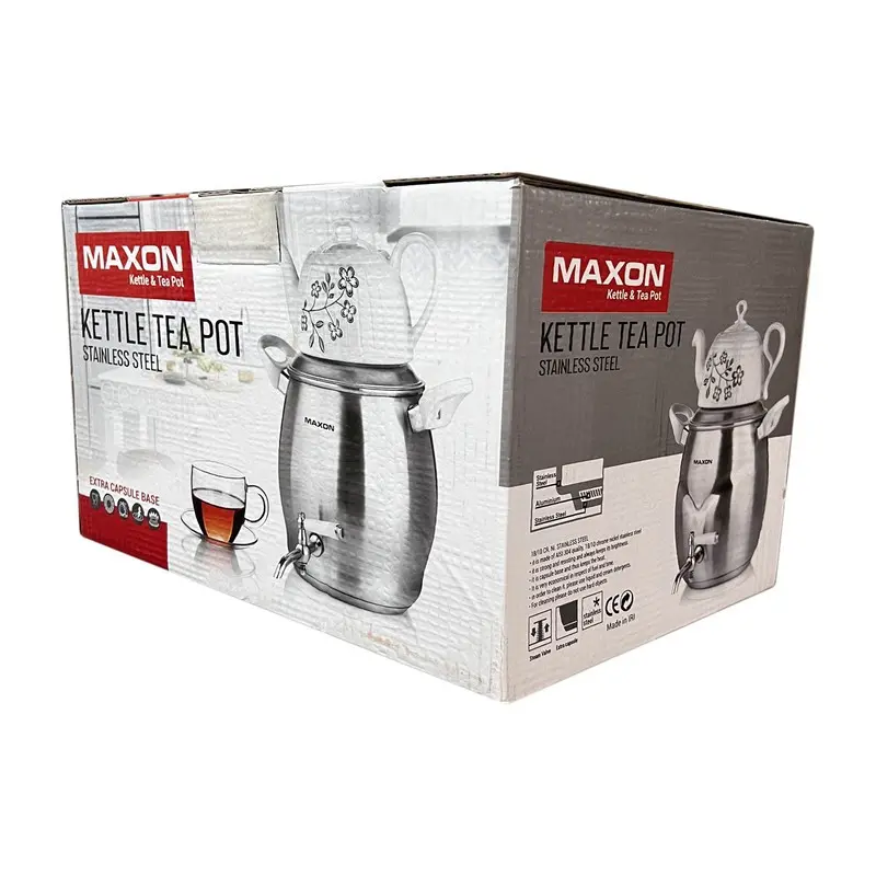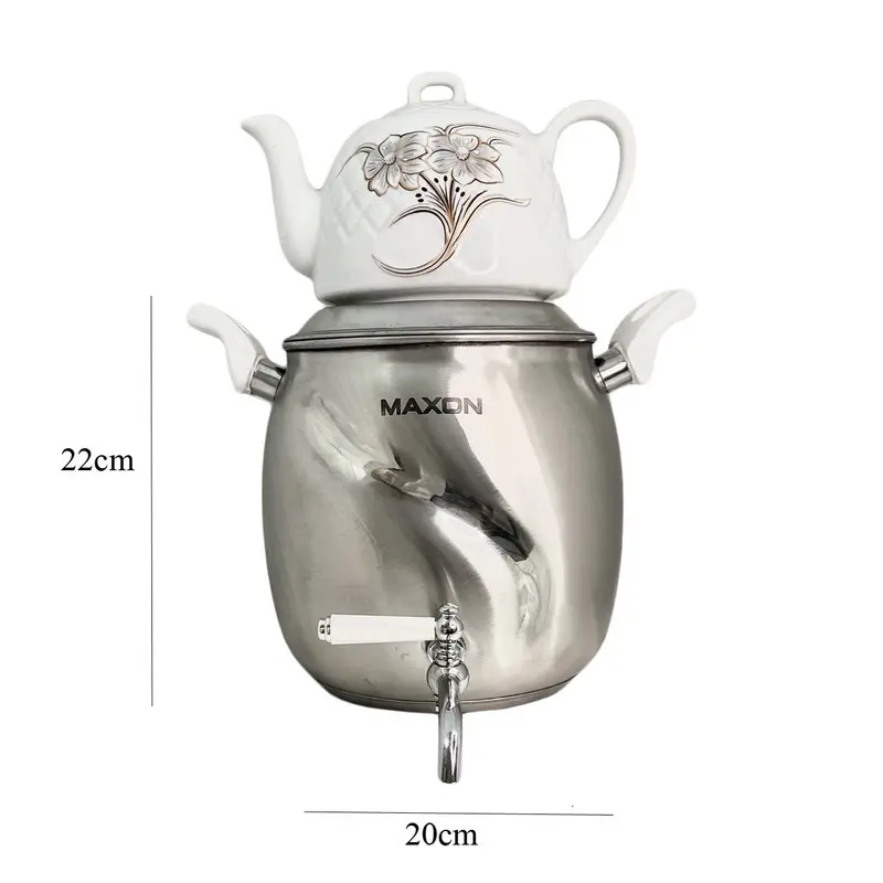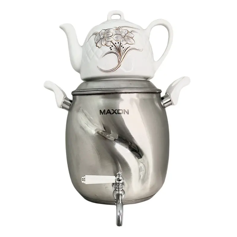 کتری و قوری مکسون کف چدن، کتری استیل طرحدار 6 لیتری و قوری چینی | ارسال رایگان