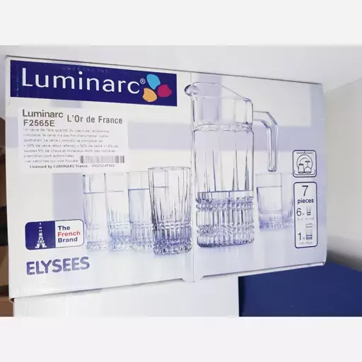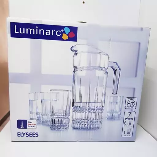 پارچ و لیوان لومینارک مدل الیزه اصلی 7 پارچه ساخت امارات سری گلد فرنس F2565E LUMINARC ELYSEES | ارسال رایگان