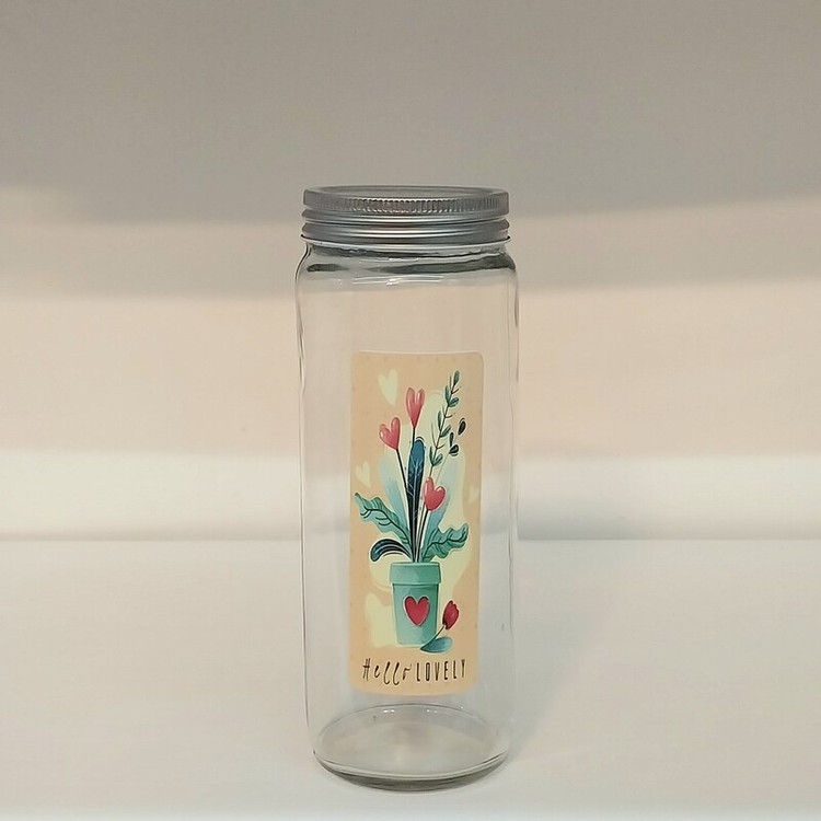 جار استوانه درب کانتینری شیشه ای فانتزی سایز یک ارتفاع 20 سانت