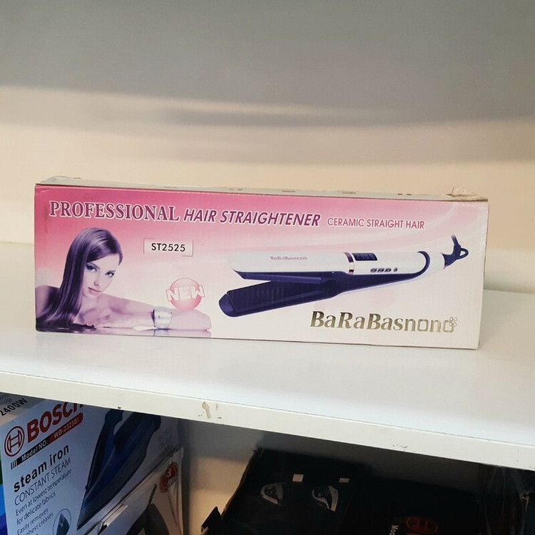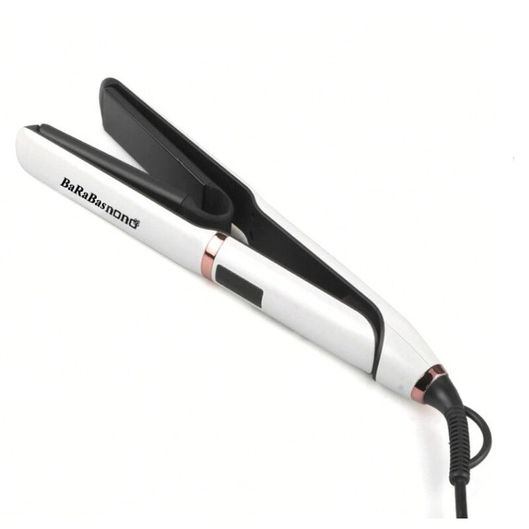 اتو مو باراباس نانو مدل ST-2525 حداکثر دما ۲۳۰ درجه سانتیگراد طول صفحه اتو ۱۰ سانت ، عرض صفحه ۳ سانت خاموشی خودکار: پس از ۳۰ دقیقه طول سیم: ۲ متر قابل تنظیم از ۱۳۰ تا ۲۳۰ درجه سانتیگراد مجهز به نمایشگر دیجیتال جنس صفحات ptc