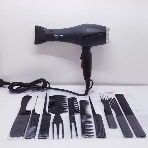 سشوار حرفه ای فیلیپس 9000 وات سالنی همراه با 10 عدد شانه مدل 1990- بدنه خط و خش دارد اقساط بلند مدت