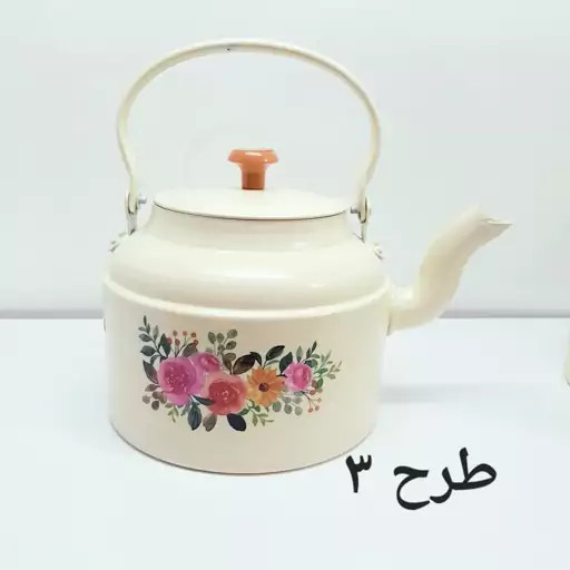 کتری روحی طرح دار 2 لیتری با ارتفاع 13و قطر 15سانت نسوز رنگ کوره مدل 2420