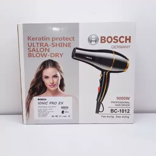 سشوار کراتینه حرفه ای بوش اصلی جرمنی حک شده 9000 وات سالنی مدل lONIC PRO ZX همراه با 10 عدد شانه | ارسال رایگان