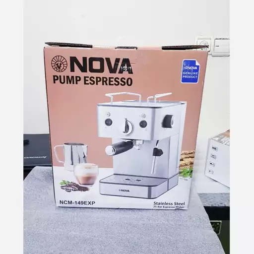 اسپرسو و قهوه ساز تمام استیل نوا 25 بار ۲۰۰۰ وات مدل 149 EXP شرکتی | ارسال رایگان