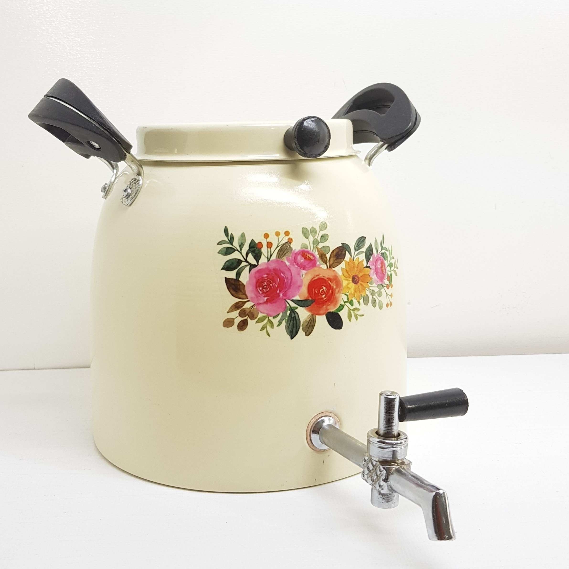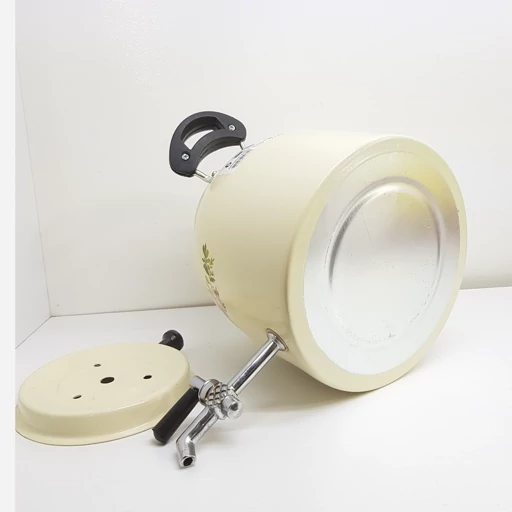 یک انتخاب مطمئن برای آشپزخانهی خانه: بدنه روی/روحی درجه ۱ (آهنربا نگیر)، پوشش کِرِم کورهای مقاوم، سازگار با شعله مستقیم آتش و اجاق گازی؛ با شیر توپی برنجی فلزی قابل تعویض برای استفادهای تمیز، ایمن و طولانیمدت.