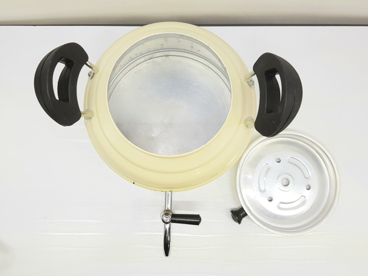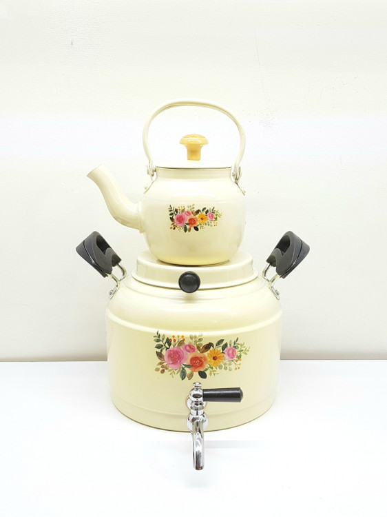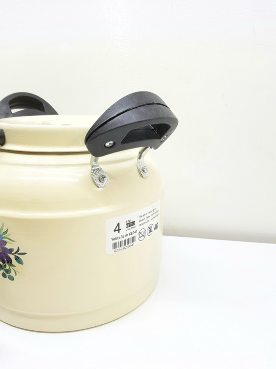 یک انتخاب مطمئن برای آشپزخانهی خانه: بدنه روی/روحی (آهنربا نگیر)، پوشش کِرِم کورهای مقاوم، سازگار با شعله مستقیم آتش و اجاق گازی؛ با شیر توپی برنجی فلزی قابل تعویض برای استفادهای تمیز، ایمن و طولانیمدت.