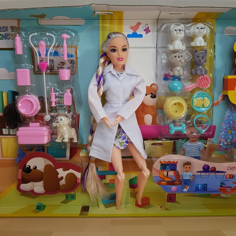 عروسک باربی دکتر حیوانات 20 تیکه با لباس گوشتی مفصلی 30 سانتیناموجود